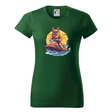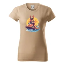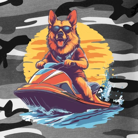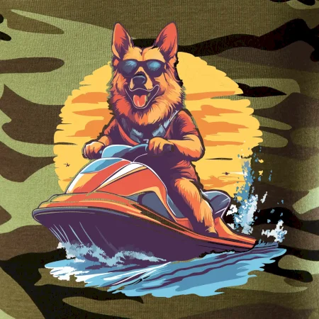 Nemecký ovčiak na vodnom skútri