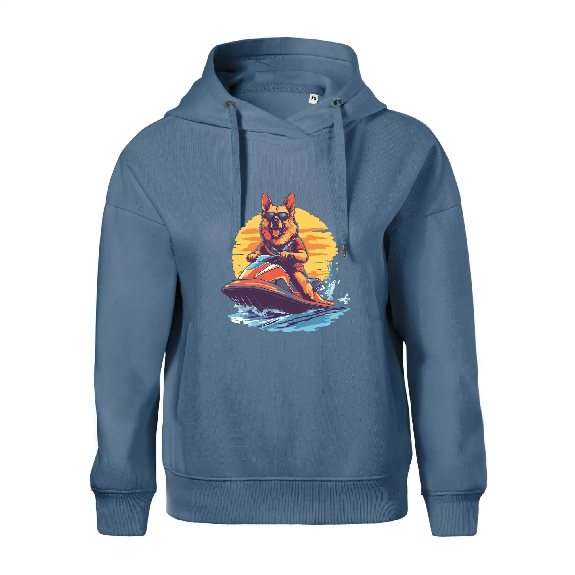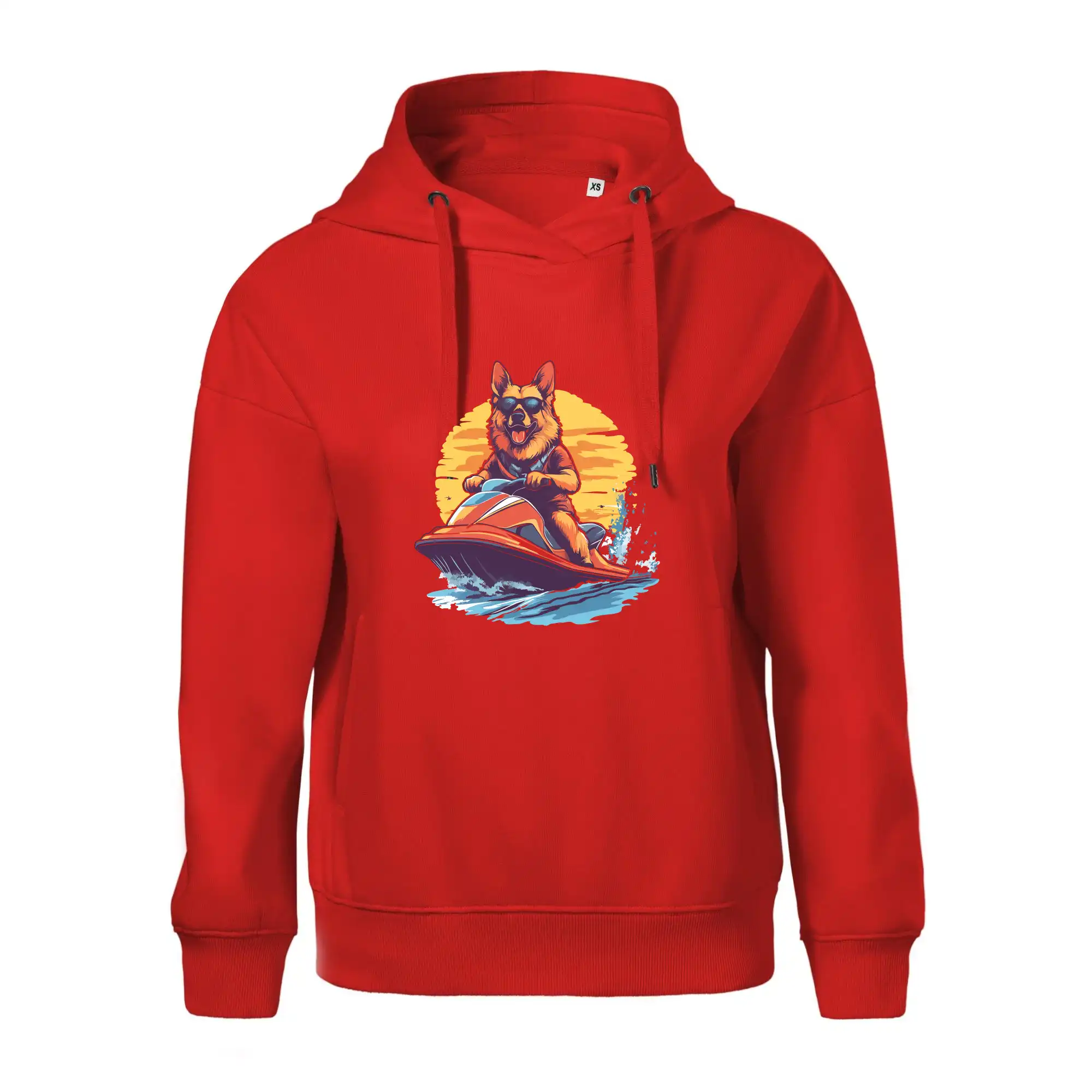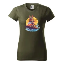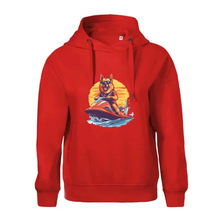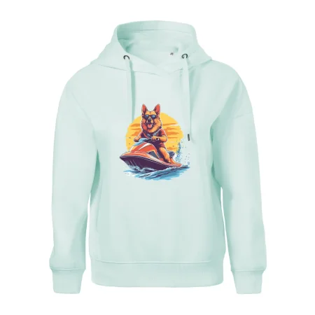 Nemecký ovčiak na vodnom skútri