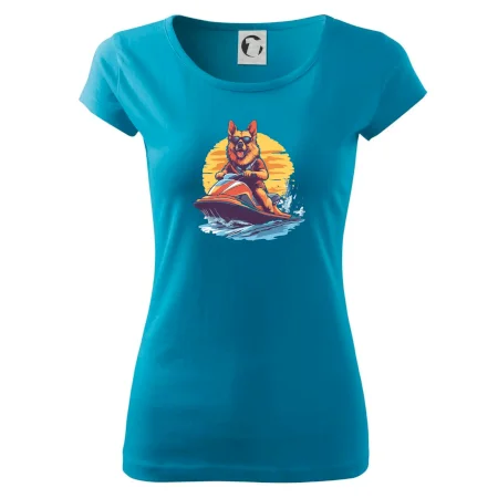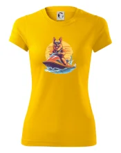 Nemecký ovčiak na vodnom skútri