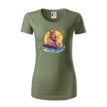 Nemecký ovčiak na vodnom skútri