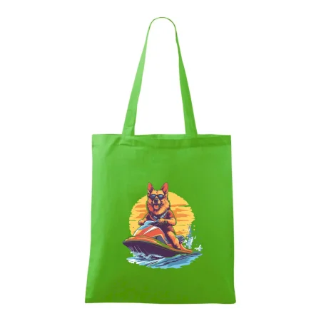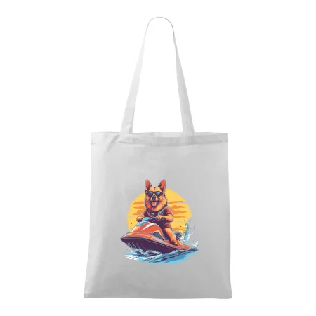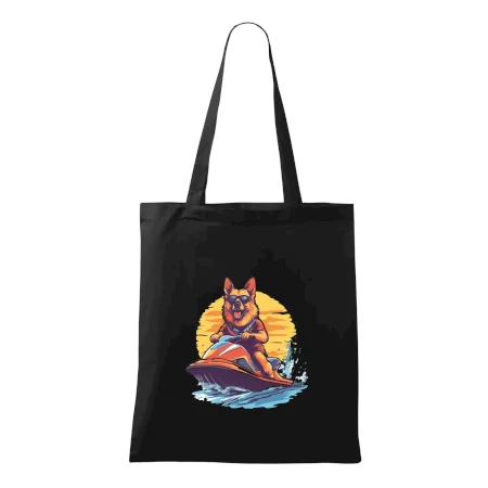 Nemecký ovčiak na vodnom skútri