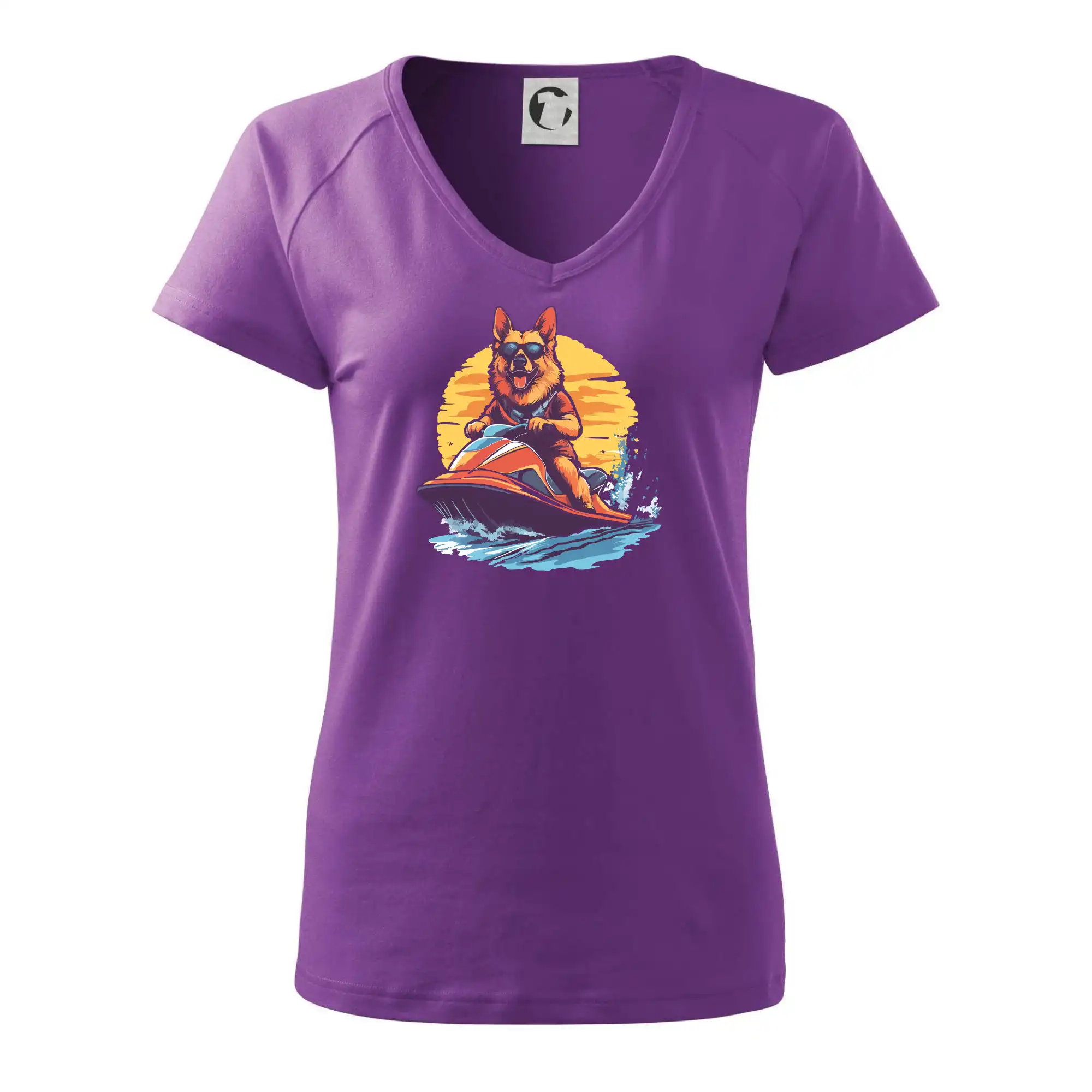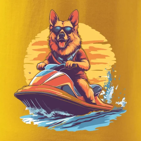 Nemecký ovčiak na vodnom skútri