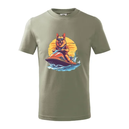 Nemecký ovčiak na vodnom skútri