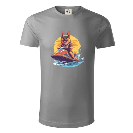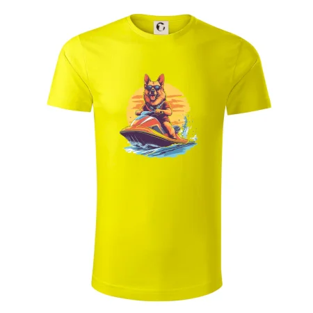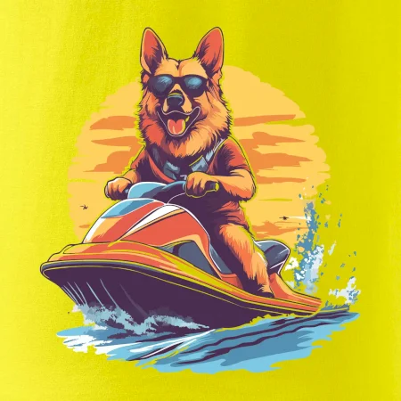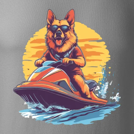Nemecký ovčiak na vodnom skútri