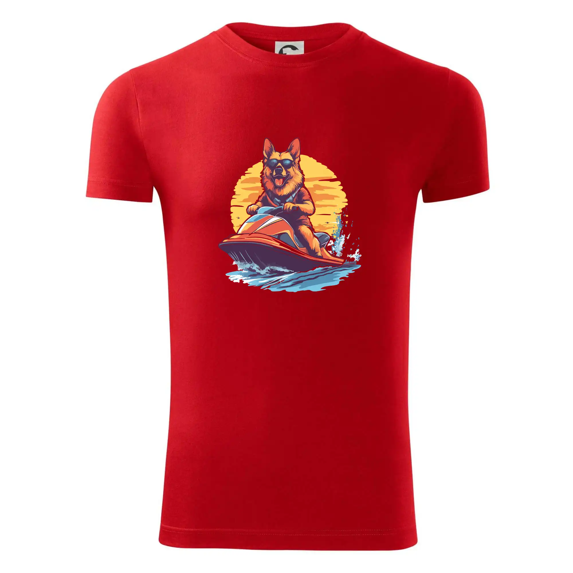 Nemecký ovčiak na vodnom skútri