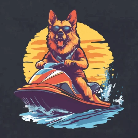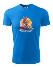 Nemecký ovčiak na vodnom skútri