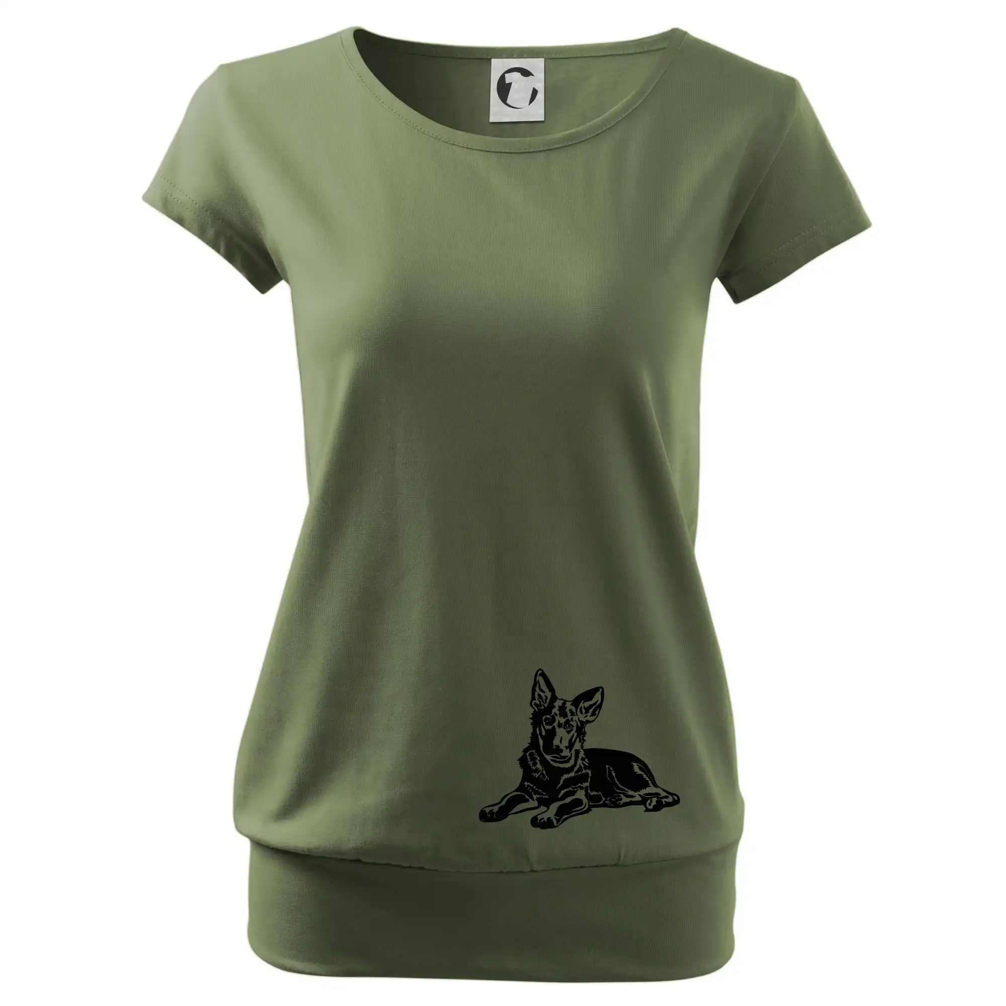Trendové dámske tričko s veľmi krátkym rukávom, voľnejšieho strihu, v dolnom kraji všité do širokého lemu. Okrúhly priekrčník s úzkym lemom zo zhodného materiálu.