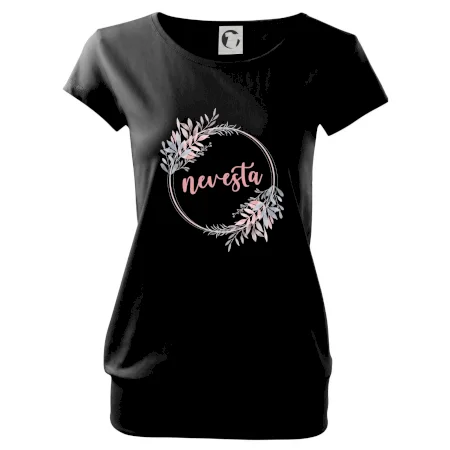 Trendové dámske tričko s veľmi krátkym rukávom, voľnejšieho strihu, v dolnom kraji všité do širokého lemu. Okrúhly priekrčník s úzkym lemom zo zhodného materiálu.