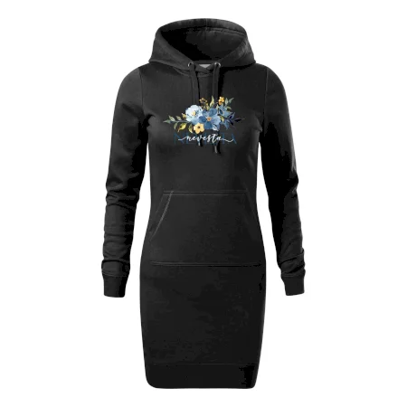 Dámske mikinové šaty MALFINI Snap 419 sú ideálnou voľbou pre ženy, ktoré hľadajú pohodlný a štýlový kúsok na voľný čas alebo každodenné nosenie. Ľahko vypasovaný strih s bočnými švami podčiarkuje ženskú siluetu, zatiaľ čo kapucňa s podšívkou a sťahovacou šnúrkou dodáva ležérny vzhľad. Šaty majú dĺžku nad kolená a sú vybavené našitým vreckom v štýle „klokanky“. Materiál je mäkký a príjemný na dotyk grâce à smesi bavlny a polyesteru s nepočesanou vnútornou stranou.