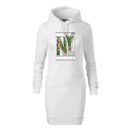 Dámske mikinové šaty MALFINI Snap 419 sú ideálnou voľbou pre ženy, ktoré hľadajú pohodlný a štýlový kúsok na voľný čas alebo každodenné nosenie. Ľahko vypasovaný strih s bočnými švami podčiarkuje ženskú siluetu, zatiaľ čo kapucňa s podšívkou a sťahovacou šnúrkou dodáva ležérny vzhľad. Šaty majú dĺžku nad kolená a sú vybavené našitým vreckom v štýle „klokanky“. Materiál je mäkký a príjemný na dotyk grâce à smesi bavlny a polyesteru s nepočesanou vnútornou stranou.
