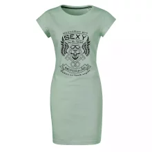 Trendové dámske tričko s veľmi krátkym rukávom, voľnejšieho strihu, v dolnom kraji všité do širokého lemu. Okrúhly priekrčník s úzkym lemom zo zhodného materiálu.