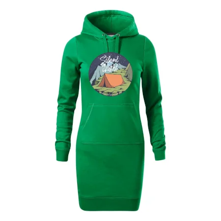 Dámske mikinové šaty MALFINI Snap 419 sú ideálnou voľbou pre ženy, ktoré hľadajú pohodlný a štýlový kúsok na voľný čas alebo každodenné nosenie. Ľahko vypasovaný strih s bočnými švami podčiarkuje ženskú siluetu, zatiaľ čo kapucňa s podšívkou a sťahovacou šnúrkou dodáva ležérny vzhľad. Šaty majú dĺžku nad kolená a sú vybavené našitým vreckom v štýle „klokanky“. Materiál je mäkký a príjemný na dotyk grâce à smesi bavlny a polyesteru s nepočesanou vnútornou stranou.