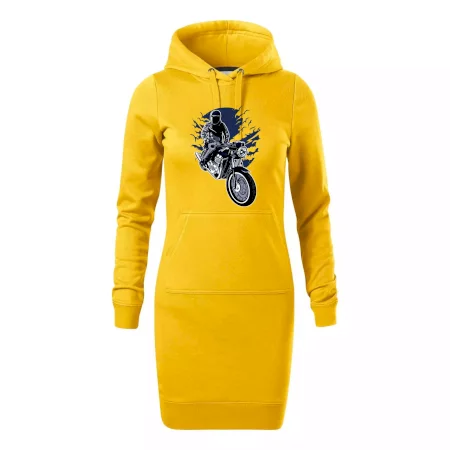 Dámske mikinové šaty MALFINI Snap 419 sú ideálnou voľbou pre ženy, ktoré hľadajú pohodlný a štýlový kúsok na voľný čas alebo každodenné nosenie. Ľahko vypasovaný strih s bočnými švami podčiarkuje ženskú siluetu, zatiaľ čo kapucňa s podšívkou a sťahovacou šnúrkou dodáva ležérny vzhľad.