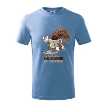 Máš rád kávu a nedokážeš bez kávy podať poriadny pracovný výkon? Potom je toto tričko práve pre Teba! Pokiaľ nie je káva, nie je práca...