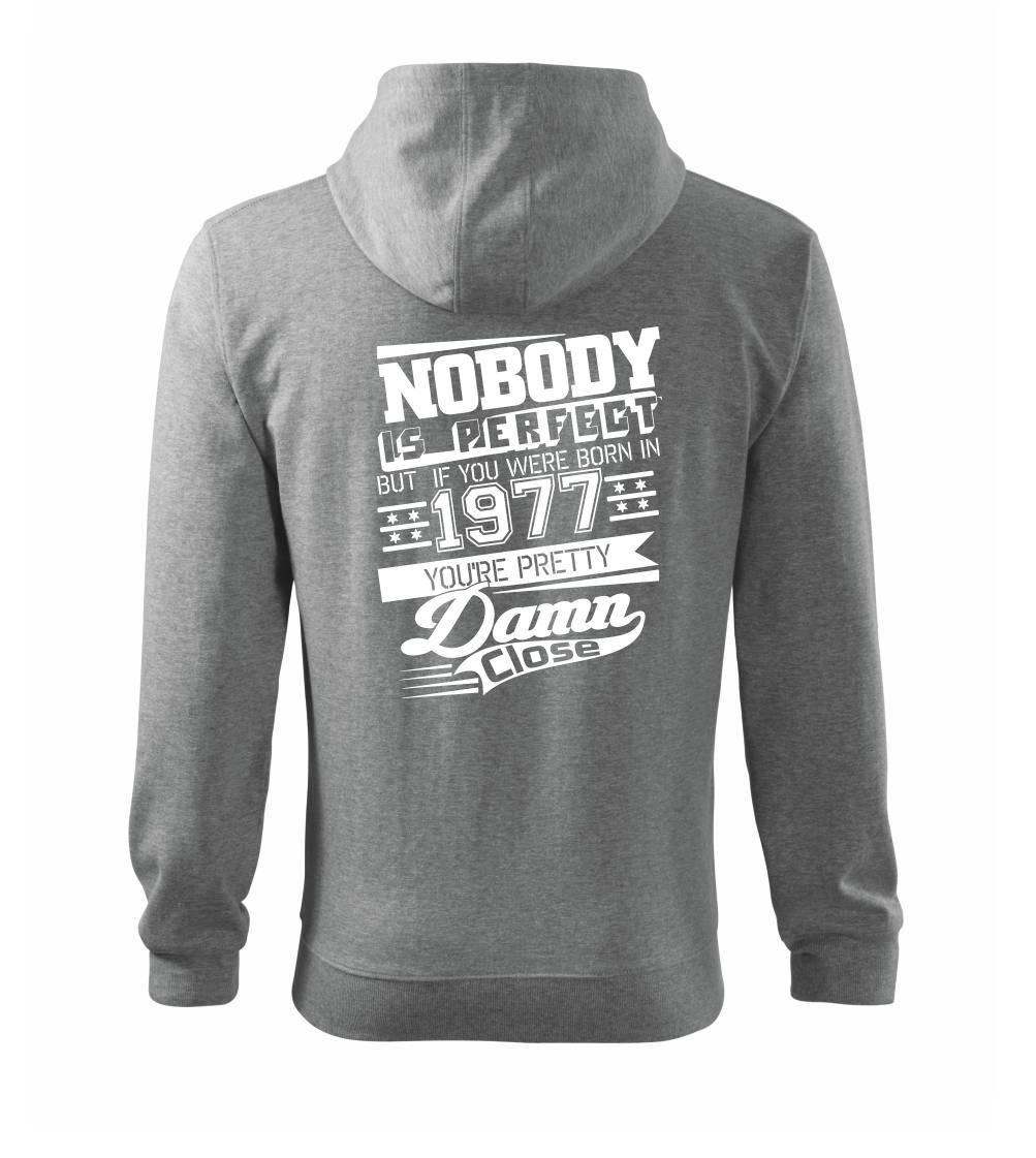 Narodeninové tričko pre ročník 1977. Zháňaš originálny darček? Tričko nikto ni je dokonalý, ale si veľmi blízko je ten najlepší darček, ktorým určite potešíš.