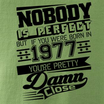Narodeninové tričko pre ročník 1977. Zháňaš originálny darček? Tričko nikto ni je dokonalý, ale si veľmi blízko je ten najlepší darček, ktorým určite potešíš.