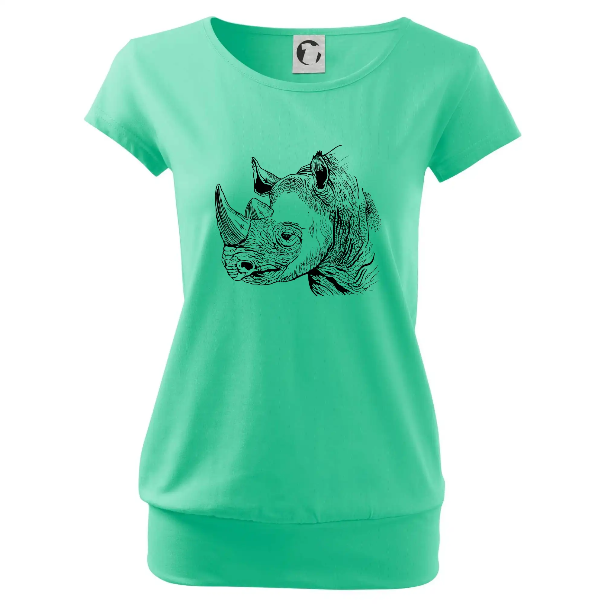 Trendové dámske tričko s veľmi krátkym rukávom, voľnejšieho strihu, v dolnom kraji všité do širokého lemu. Okrúhly priekrčník s úzkym lemom zo zhodného materiálu.