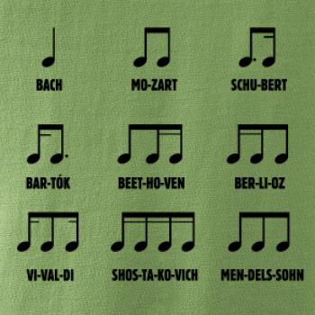 Pamatujete si noty ještě ze školy, nebo jste začínající skladatelé a umíte je nazpaměť? Oslnit můžete v našem triku, tílku, mikině nebo sukni. A ani Váš mrňous nezůstane pozadu, když mu pořídíte bodýčko, nebo tričko s tímto hudebním motivem.