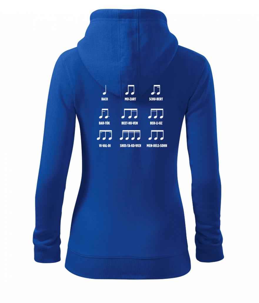 Pamatujete si noty ještě ze školy, nebo jste začínající skladatelé a umíte je nazpaměť? Oslnit můžete v našem triku, tílku, mikině nebo sukni. A ani Váš mrňous nezůstane pozadu, když mu pořídíte bodýčko, nebo tričko s tímto hudebním motivem.