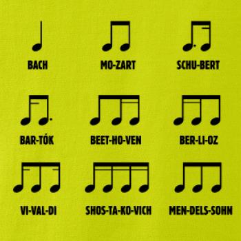 Pamatujete si noty ještě ze školy, nebo jste začínající skladatelé a umíte je nazpaměť? Oslnit můžete v našem triku, tílku, mikině nebo sukni. A ani Váš mrňous nezůstane pozadu, když mu pořídíte bodýčko, nebo tričko s tímto hudebním motivem.
