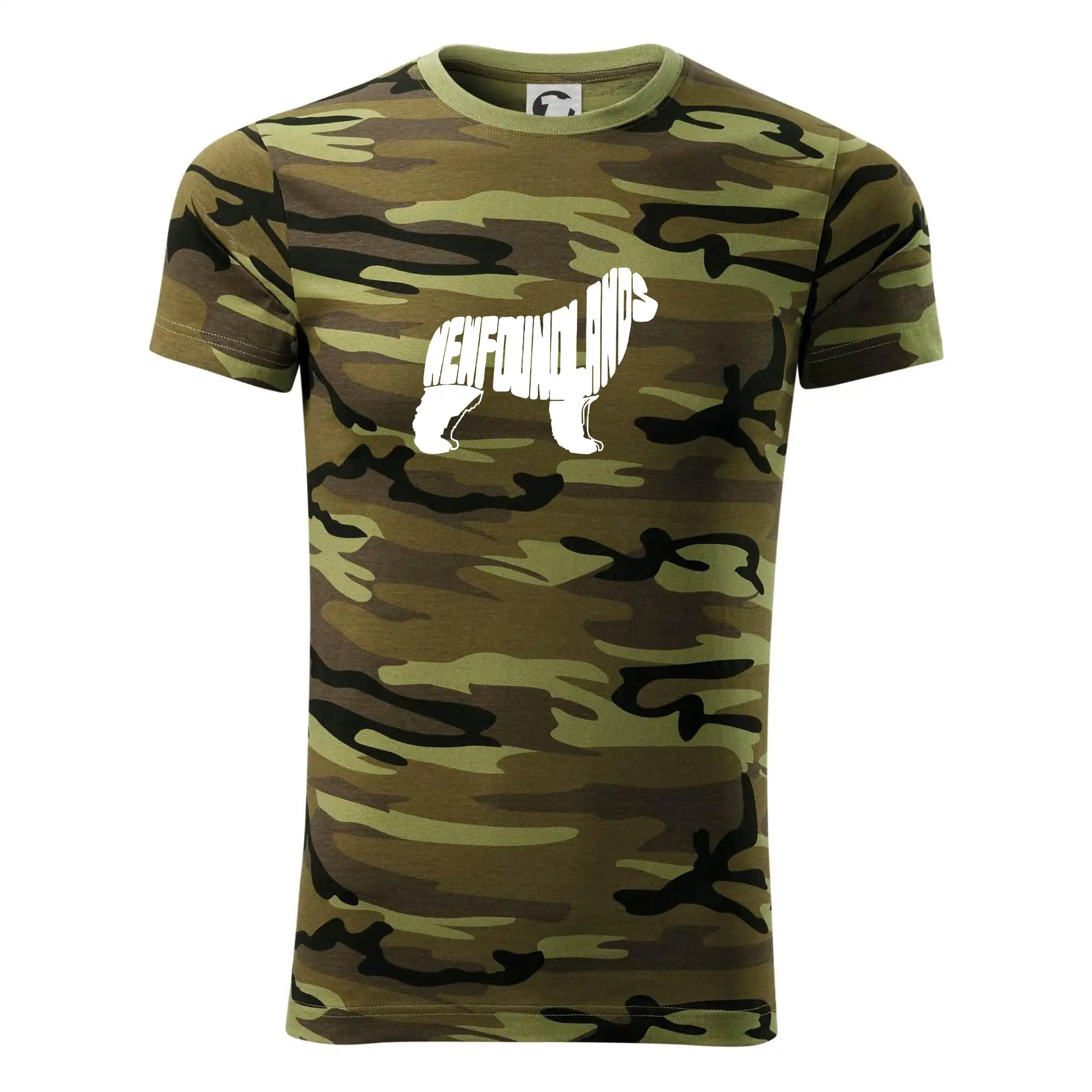 Tričko strednej gramáže vo farbách camouflage. Strih s bočnými švami. Lem priekrčníku z rebrového úpletu s prídavkom 5% elastanu. Vnútorná časť zadného priekrčníka začistená páskou vo farbe camouflage.