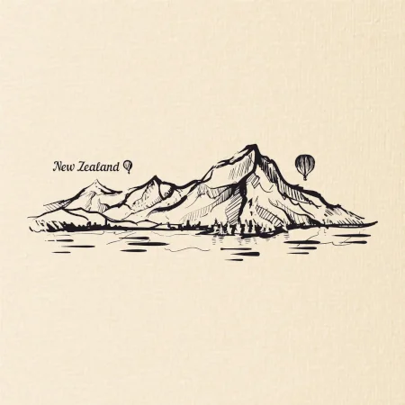 Nový Zéland nápis a hory Aoraki - Mount Cook