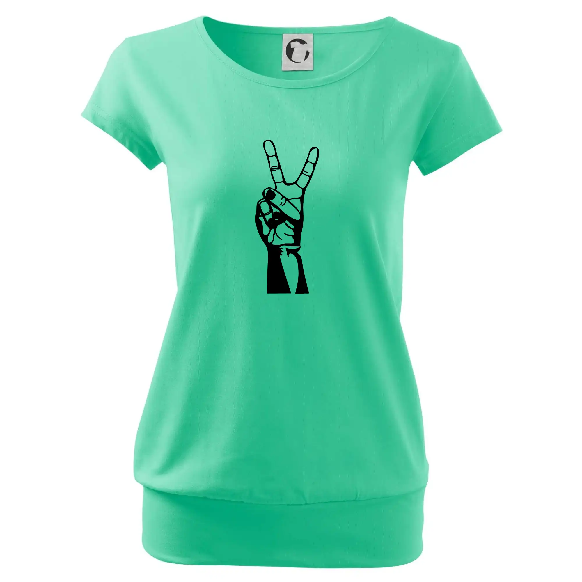 Trendové dámske tričko s veľmi krátkym rukávom, voľnejšieho strihu, v dolnom kraji všité do širokého lemu. Okrúhly priekrčník s úzkym lemom zo zhodného materiálu.