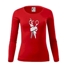 Tolerantnejšie priliehavý dámsky strih, ktorý je vhodný pre všetky typy postavy, ideálna dĺžka rukávov a konzervatívny výstrih zakončený rebrovaním, ktoré skvele drží tvar.