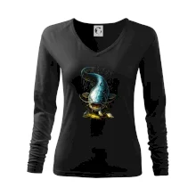 Dámske tričko s ľahko priliehavým strihom, ktorý pôsobí elegantne a skvele padne. Tento typ trička má kratšie rukávy a hlbší výstrih zakončený jemným lemovaním.