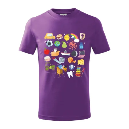Detské tričko strednej gramáže s bočnými švami. Úzky priekrčník s prídavkom 5% elastanu. Vnútorná časť zadného priekrčníka začistená tkanou páskou. Spevnený ramenný šev.