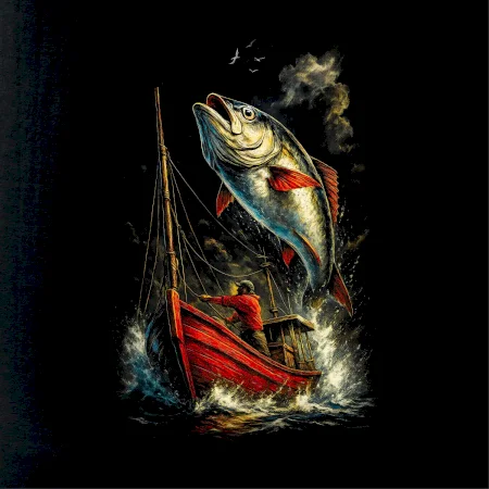 Obrázok červená loď a ryba