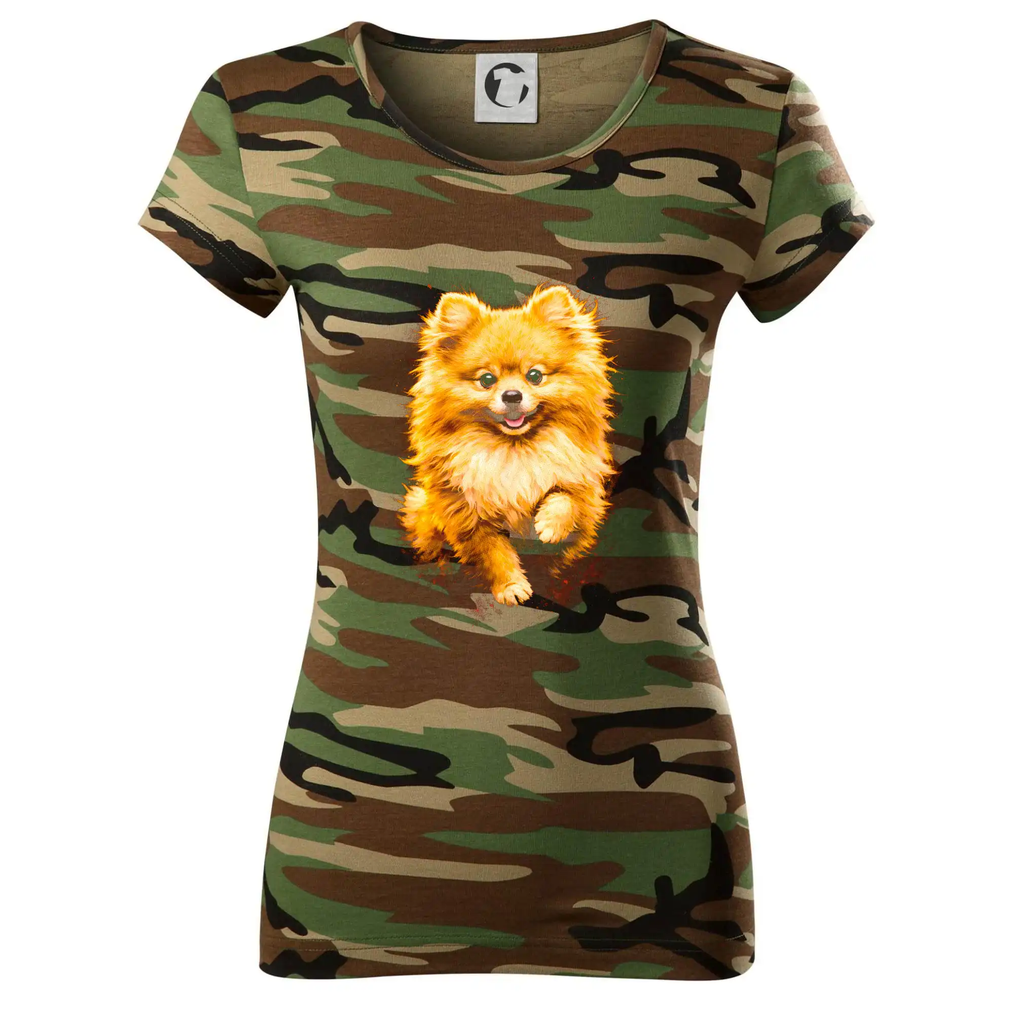 Obrázok poltón Pomoranský špic - Dámske maskáčové tričko