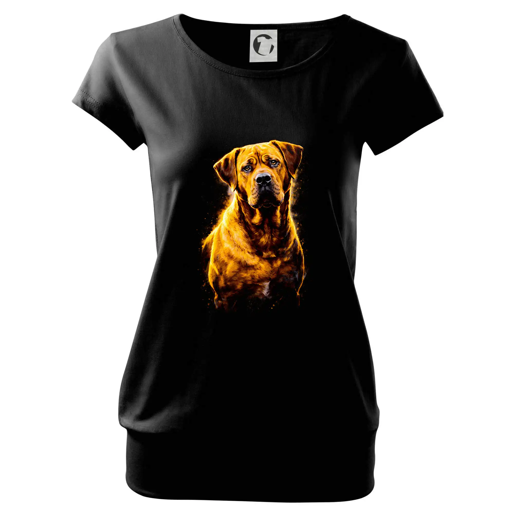Trendové dámske tričko s veľmi krátkym rukávom, voľnejšieho strihu, v dolnom kraji všité do širokého lemu. Okrúhly priekrčník s úzkym lemom zo zhodného materiálu.