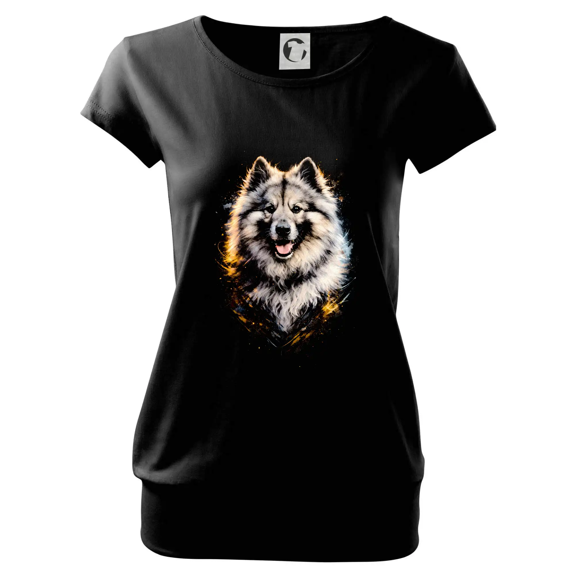 Trendové dámske tričko s veľmi krátkym rukávom, voľnejšieho strihu, v dolnom kraji všité do širokého lemu. Okrúhly priekrčník s úzkym lemom zo zhodného materiálu.