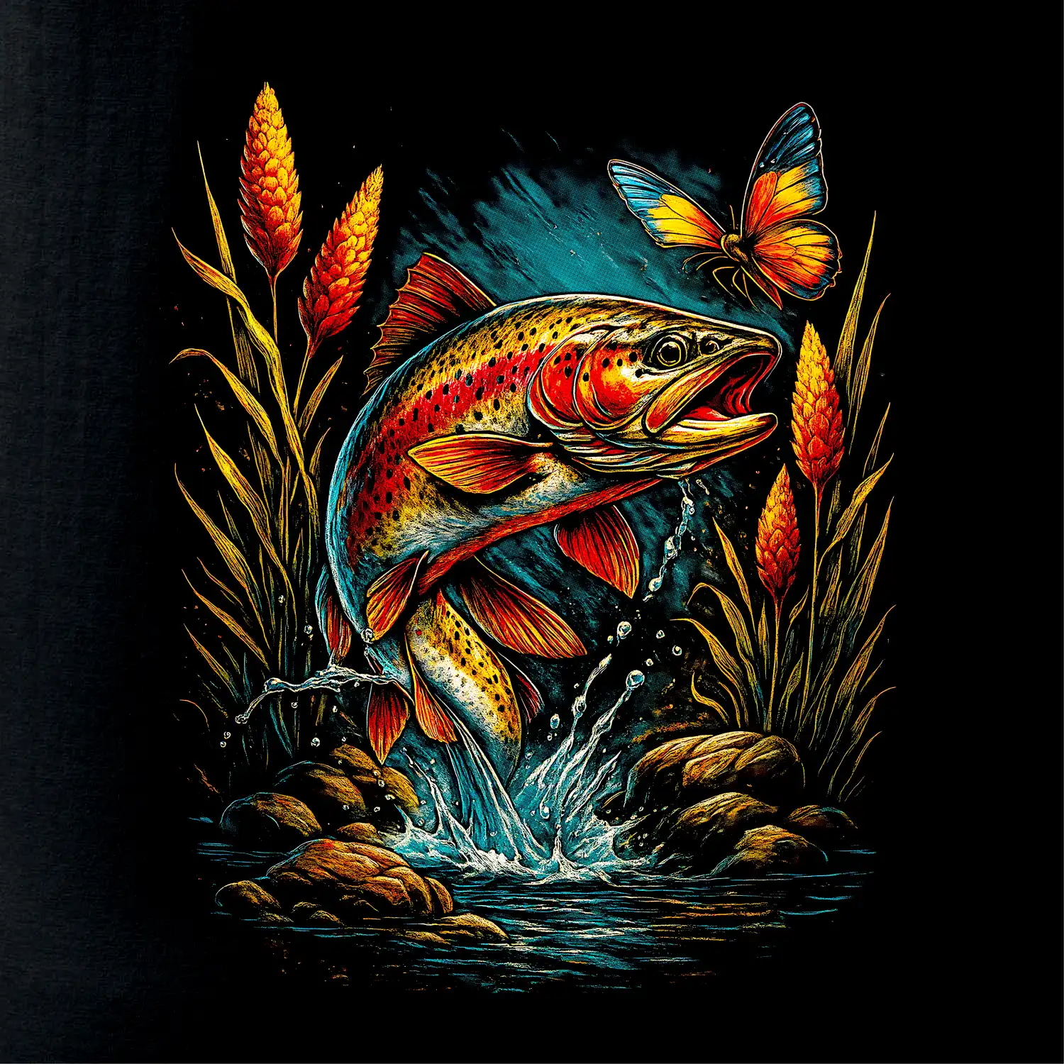 Obrázok pstruh a motýľ - Tričko extra veľké (5-8XL)