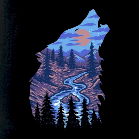 Obrys hlava vlka v noci