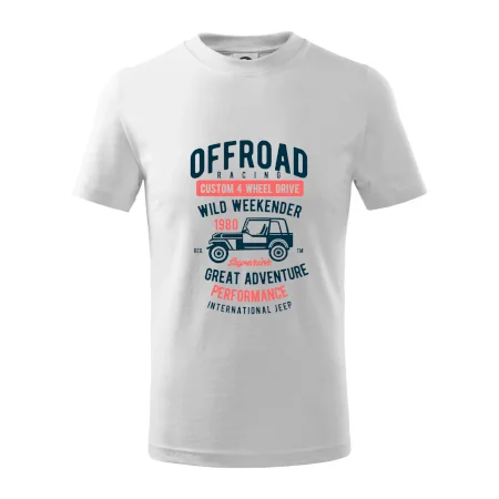 Detské tričko strednej gramáže s bočnými švami. Úzky priekrčník s prídavkom 5% elastanu. Vnútorná časť zadného priekrčníka začistená tkanou páskou. Spevnený ramenný šev.
