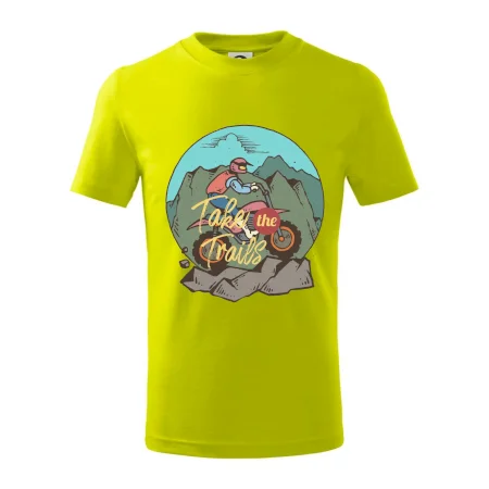 Detské tričko strednej gramáže s bočnými švami. Úzky priekrčník s prídavkom 5% elastanu. Vnútorná časť zadného priekrčníka začistená tkanou páskou. Spevnený ramenný šev.