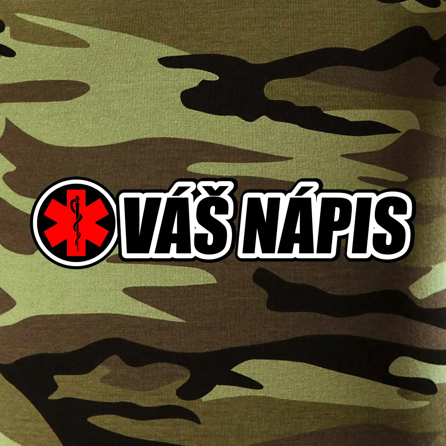 Tričko strednej gramáže vo farbách camouflage. Strih s bočnými švami. Lem priekrčníku z rebrového úpletu s prídavkom 5% elastanu. Vnútorná časť zadného priekrčníka začistená páskou vo farbe camouflage.