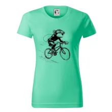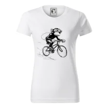 Opice s batohom na bicykli