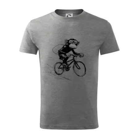 Opice s batohom na bicykli