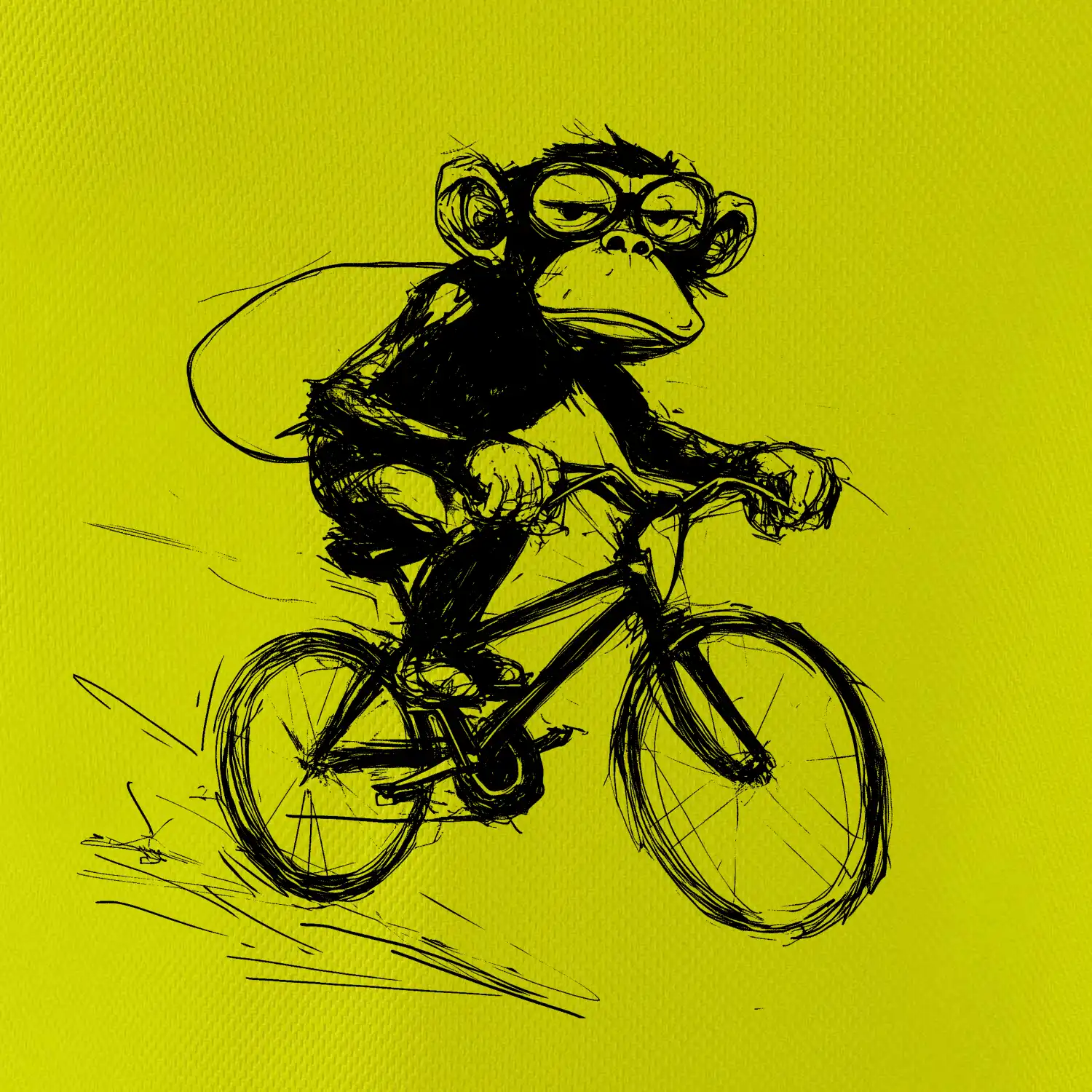 Opice s batohom na bicykli