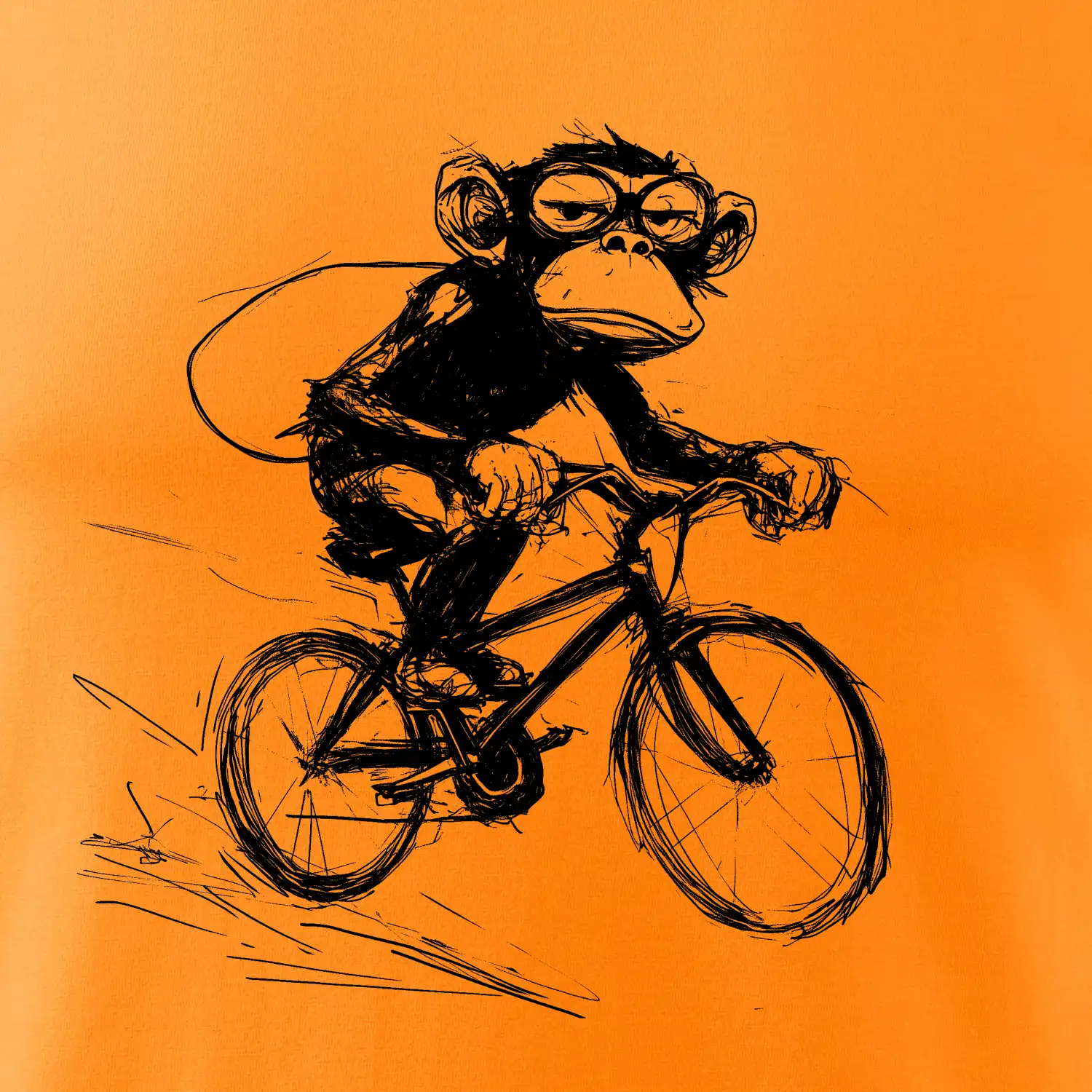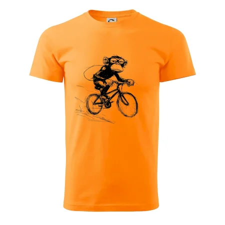 Opice s batohom na bicykli