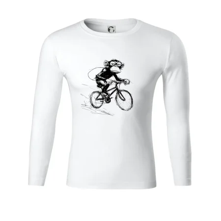 Opice s batohom na bicykli