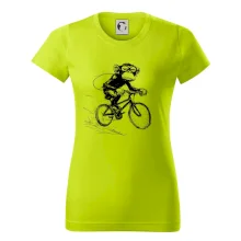 Opice s batohom na bicykli