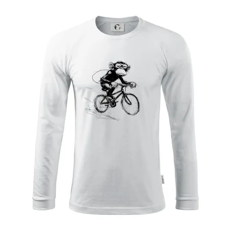 Opice s batohom na bicykli