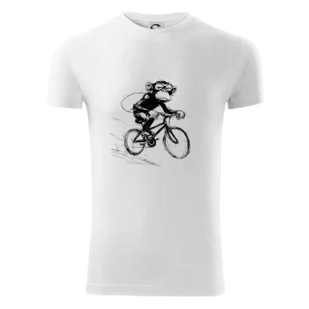Opice s batohom na bicykli
