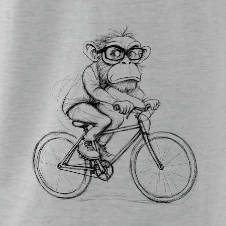 Opice s okuliarmi na bicykli