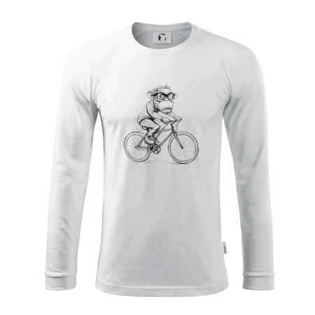 Opice s okuliarmi na bicykli