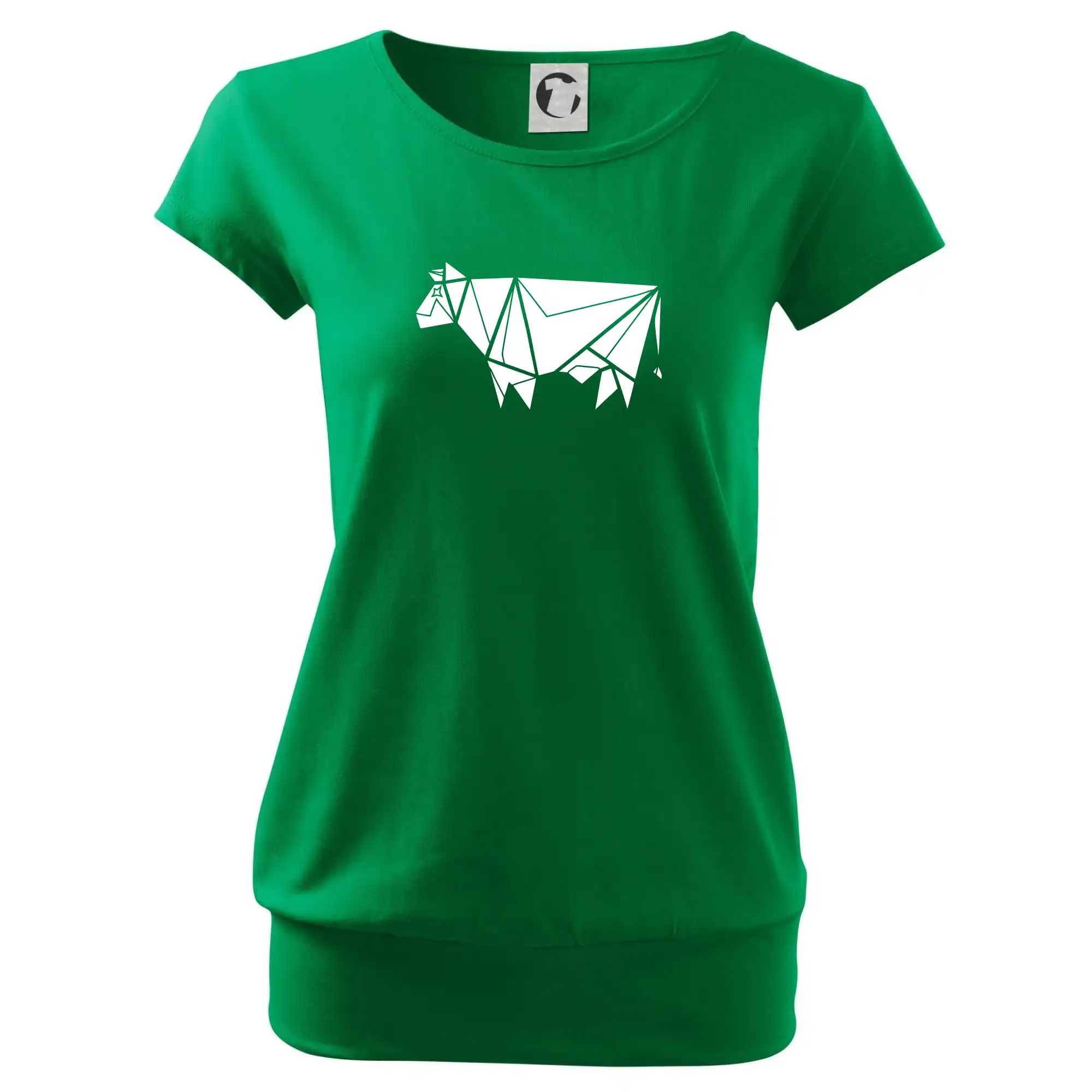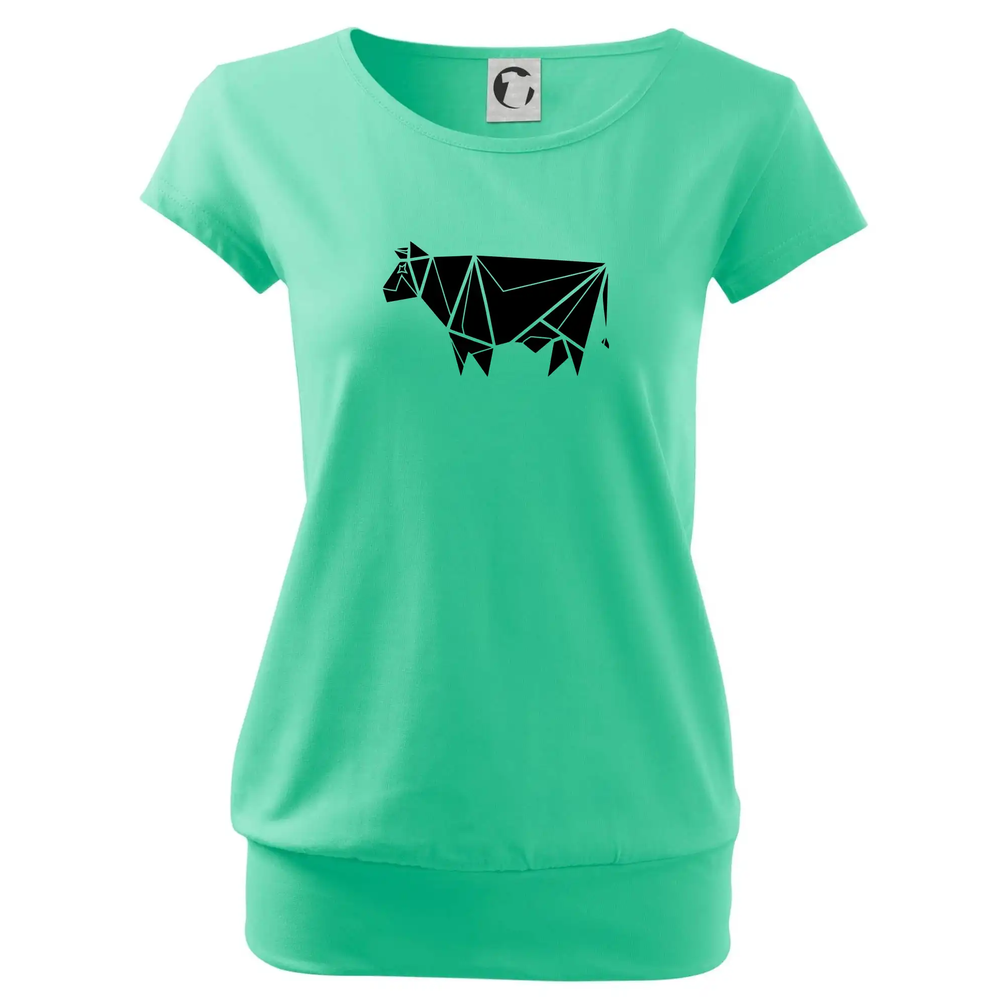 Trendové dámske tričko s veľmi krátkym rukávom, voľnejšieho strihu, v dolnom kraji všité do širokého lemu. Okrúhly priekrčník s úzkym lemom zo zhodného materiálu.
